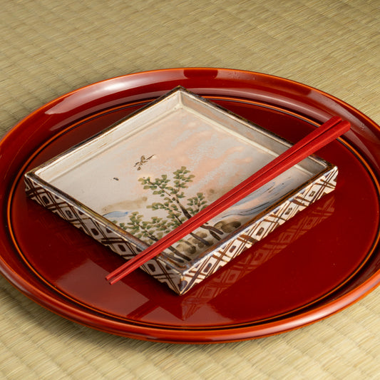 【清水焼】角皿 乾山写「卯木に郭公」 俊山窯