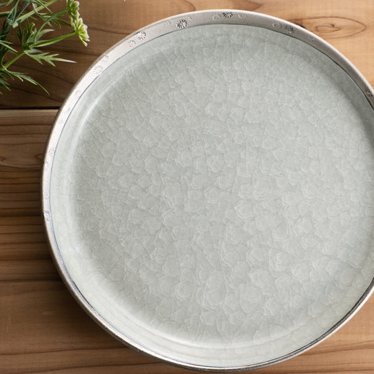 【清水焼】プレートL 亀甲貫入グレー 陶仙窯