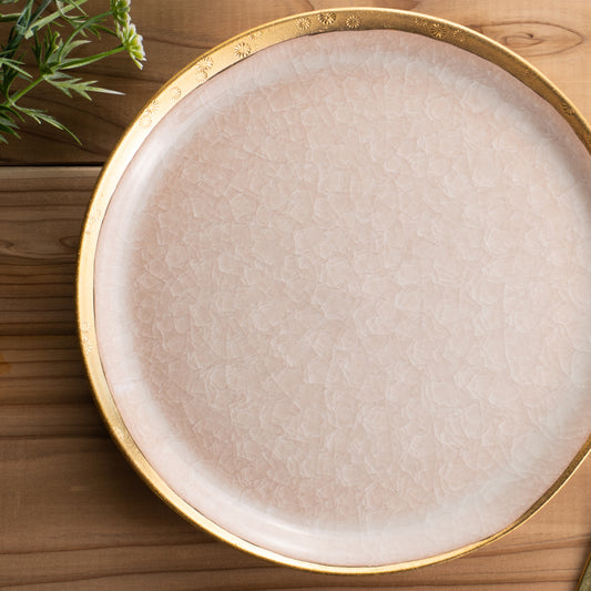 【清水焼】プレートL 亀甲貫入ピンク 陶仙窯