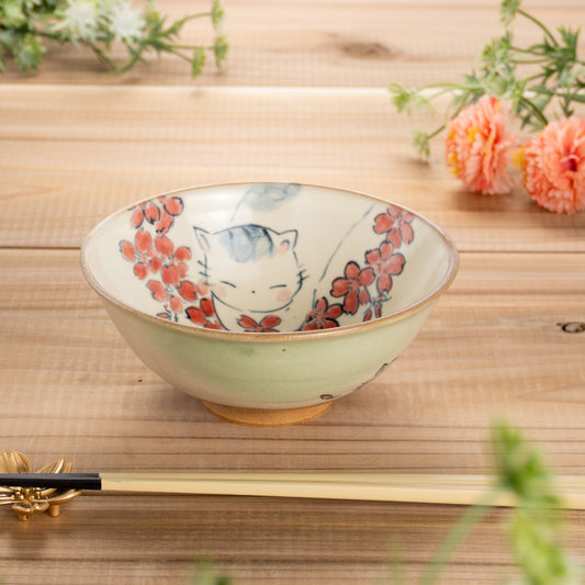 【清水焼】茶碗(大) おやすみ猫H 工房咲楽