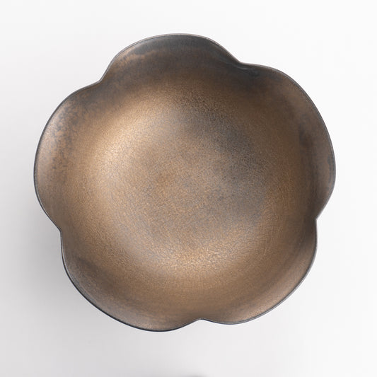 売り切れ【清水焼】菊輪花鉢 黒金彩 平安楽堂