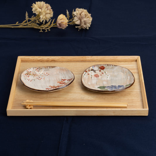 売り切れ【清水焼】楕円小皿 梅と紫陽花 俊山窯