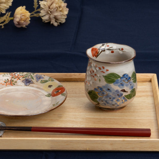 売り切れ【清水焼】湯呑 四季草花 俊山窯