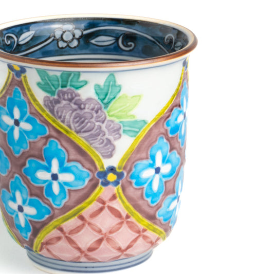 【清水焼】湯呑 交趾有職紋草花ブルー 秀峰堂