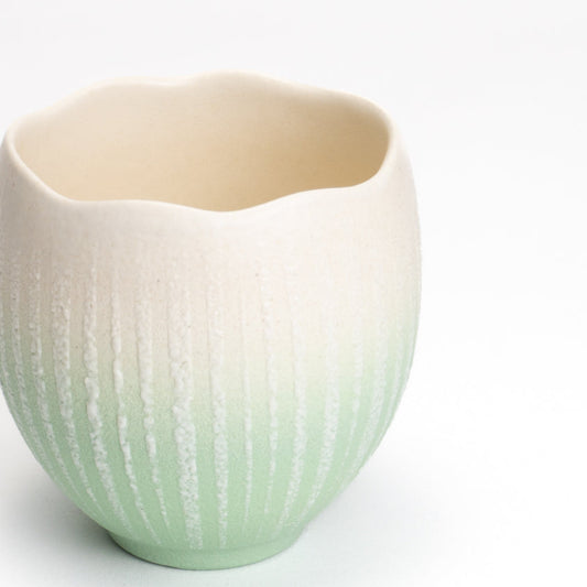 【清水焼】輪花湯呑 釉泥彩 若草色 竹村陽太郎