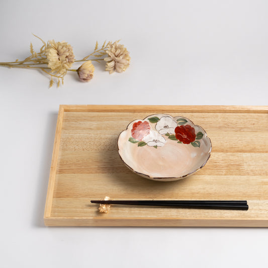 売り切れ【清水焼】輪花鉢 椿 俊山窯