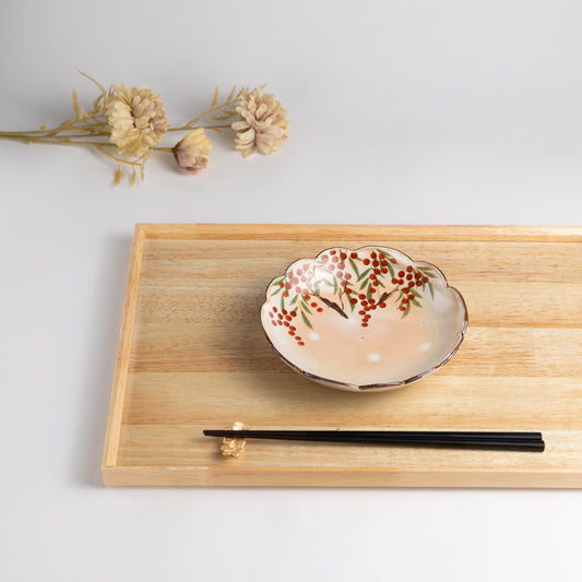 売り切れ【清水焼】輪花鉢 南天 俊山窯