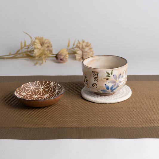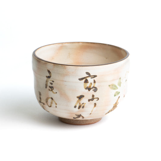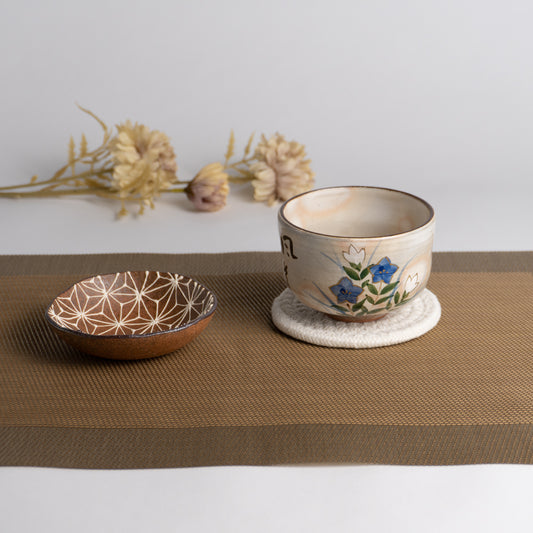 抹茶碗 浅葱交趾 竜田川に和歌 一如
