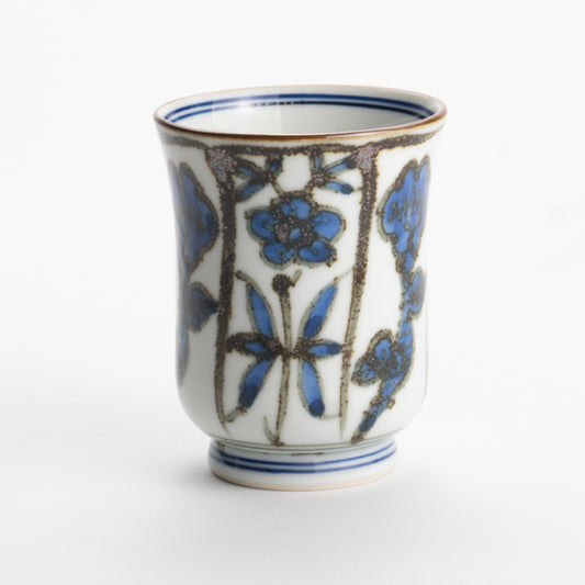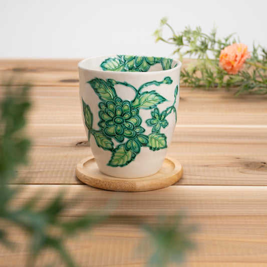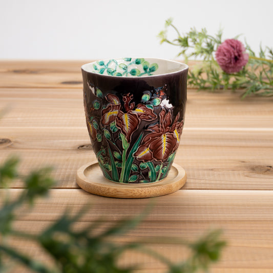 【清水焼】フリーカップ 紫交趾 四季草花 一如
