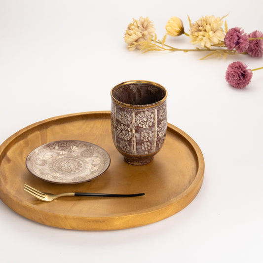【清水焼】湯呑(大) 鉄染霊芝 岩華窯