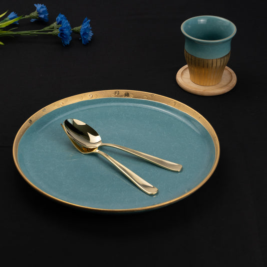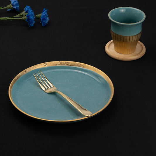Salad Plate - Tortoiseshell Crackle Blue by Tohsen-kiln
