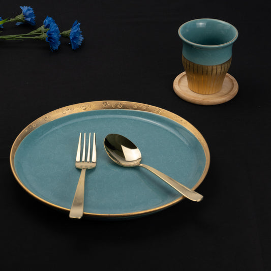 Dinner Plate - Tortoiseshell Crackle Blue by Tohsen-kiln