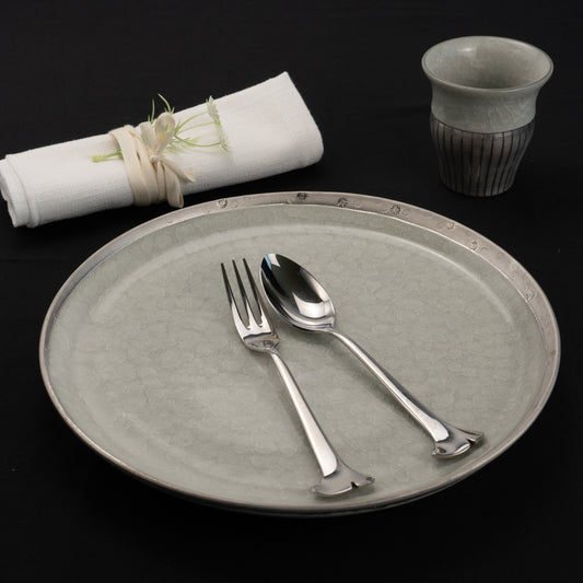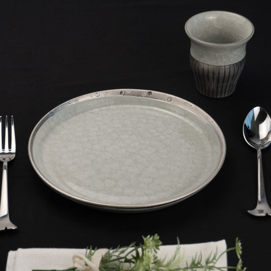 Dinner Plate- Tortoiseshell Crackle Grey by Tohsen-kiln