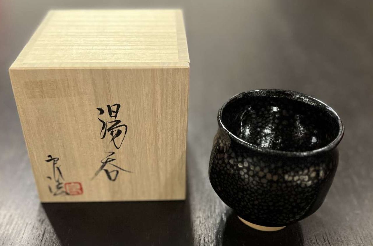 An awesome tenmoku cup !!!. It always feels good to hold a cup made by Izumi San as the design, the feel and the size is just right.