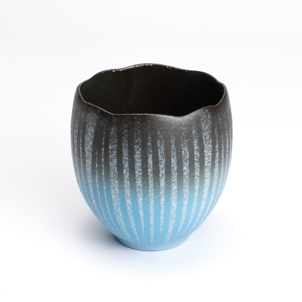 Petal shaped teacup - Glazed and painted, sky blue by Youtaro Takemura