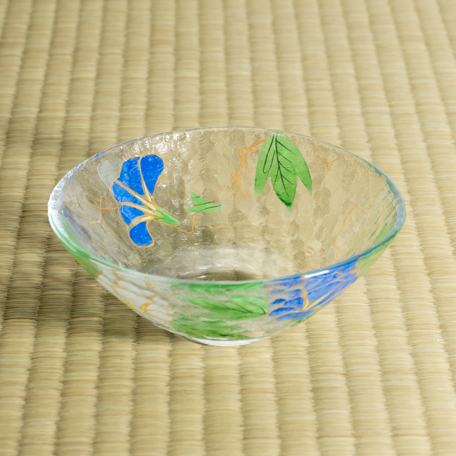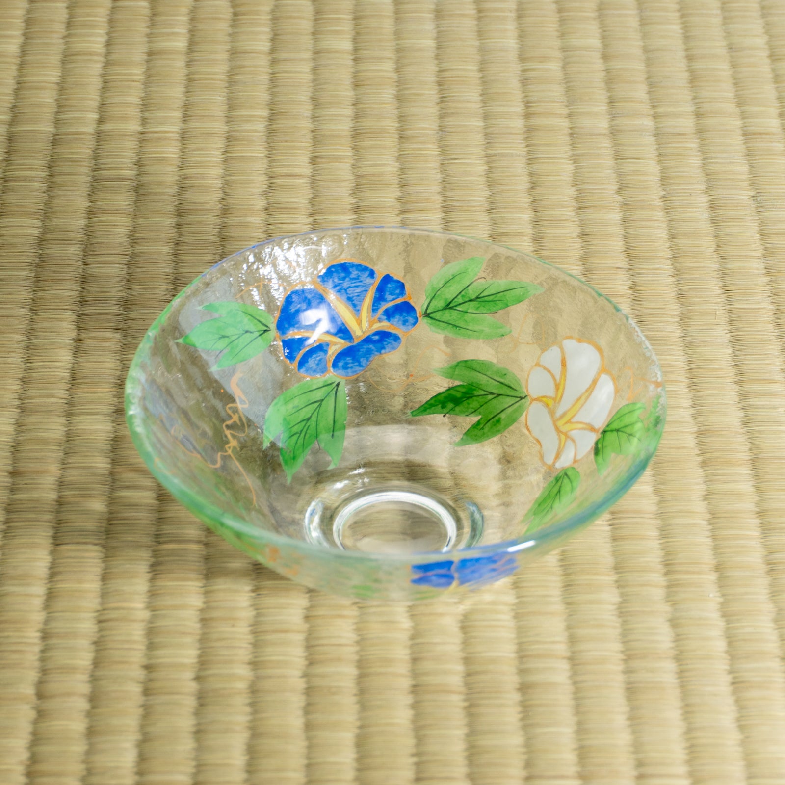 Its cool, airy presence brings a pleasant sense of freshness to summer tea moments. The hand-painted design applied on the reverse side subtly shows through the glass, a quality unique to this material. Easy to use not only as a matcha bowl but also as a serving bowl, it is a versatile piece that is also well suited as a gift.
