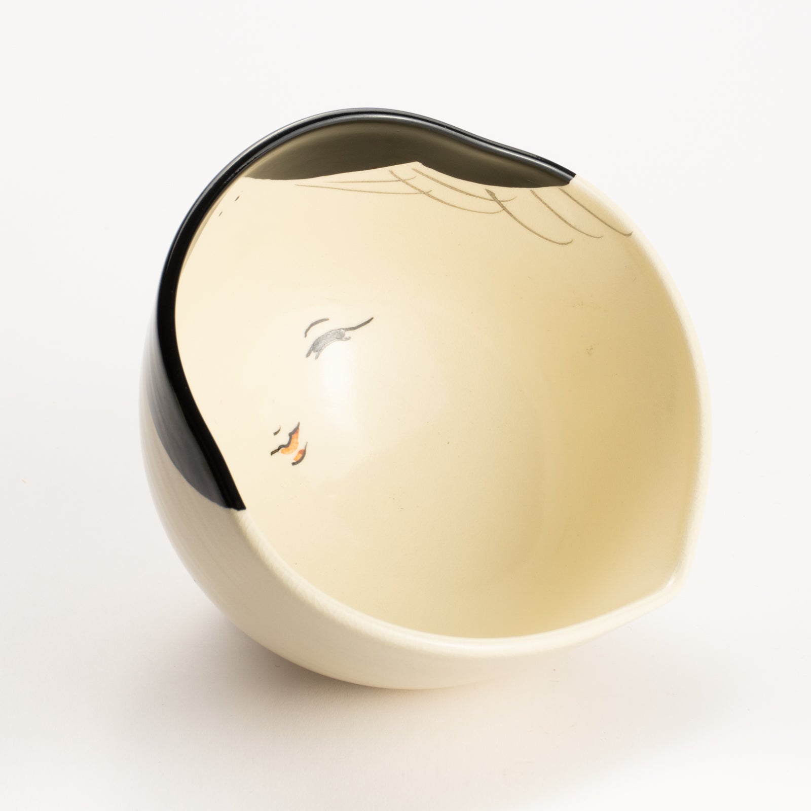 Matcha Bowl – Amber Glaze “Mount Fuji and Cranes” by Kaihou
