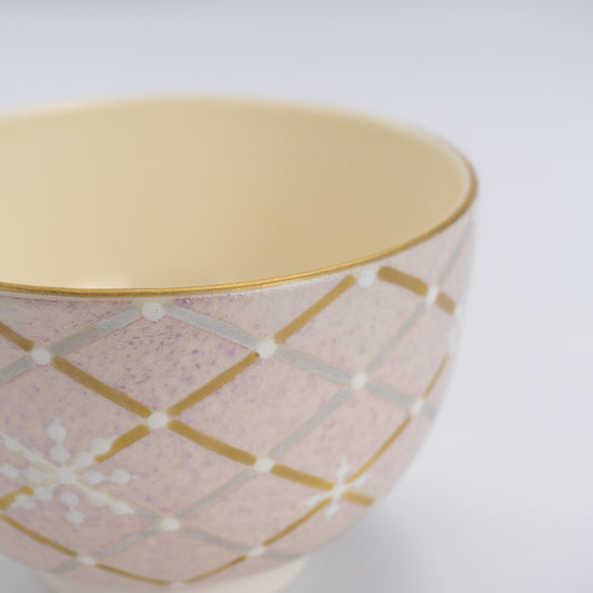 Tea bowl S- Mica Colored Mesh Snowflake Pink by Kanae Fukada