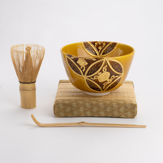 Matcha bowl -Shippou"七宝" and treasures, amber yellow by Ichinyo