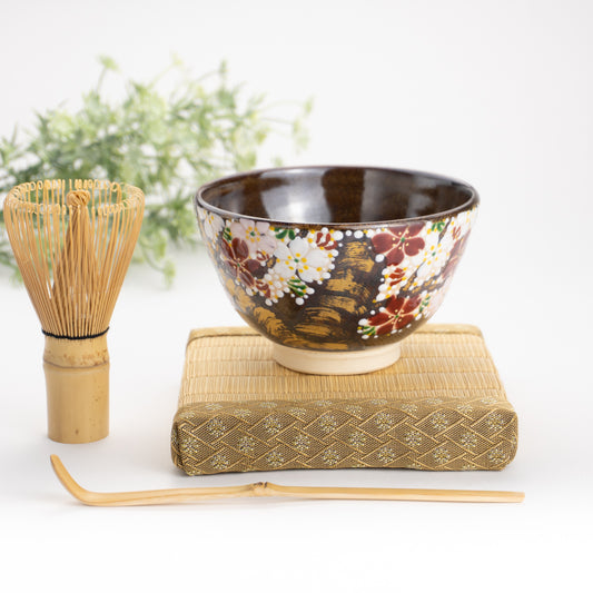 Matcha bowl - Rust painted camellia after KENZAN"乾山" by Shunzan kiln
