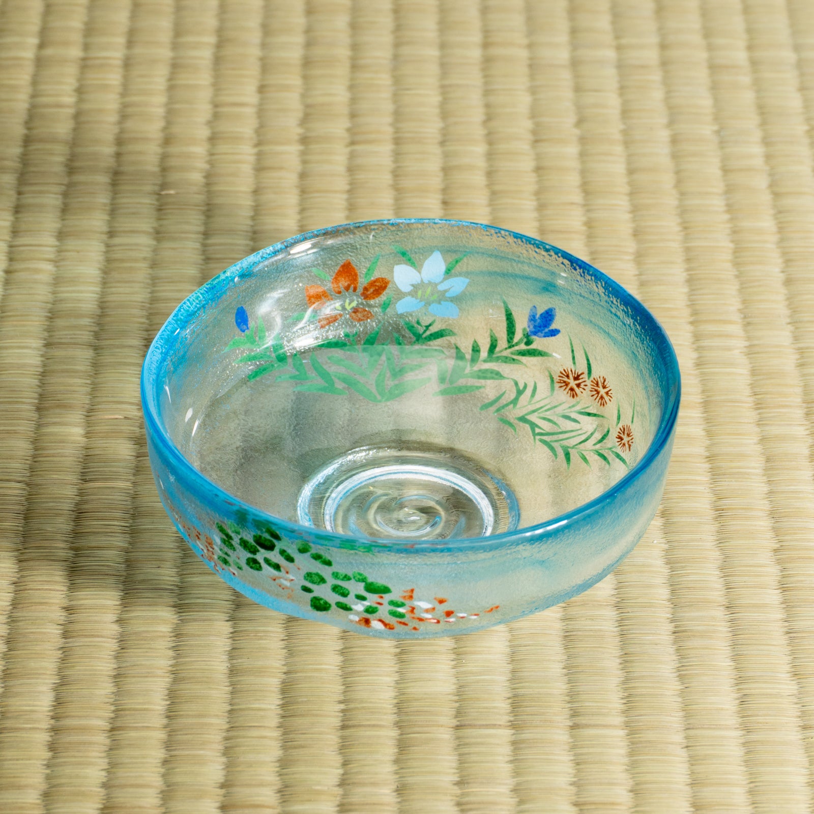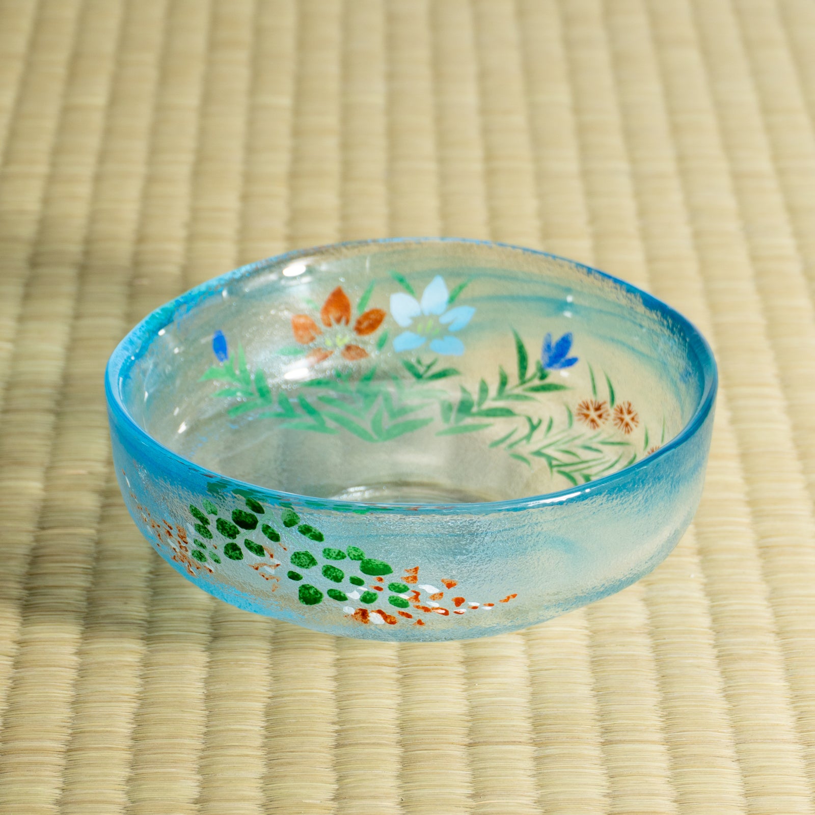 The cool, airy appearance brings a pleasant sense of freshness to summer tea moments. The hand-painted design applied on the reverse side subtly shows through the glass, a distinctive charm unique to this material. Easy to use not only as a matcha bowl but also as a serving bowl, it is a versatile piece that also makes a thoughtful gift.
