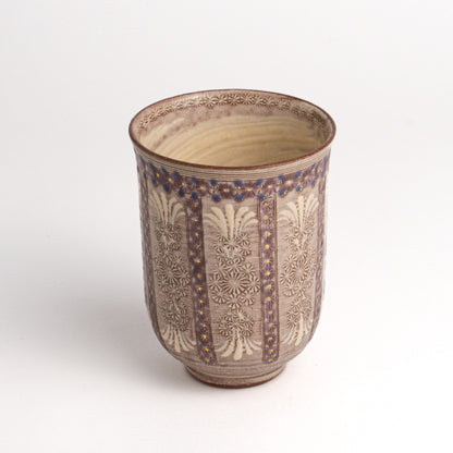 Mug -Purple stamped floral 3D by Toraku-kiln