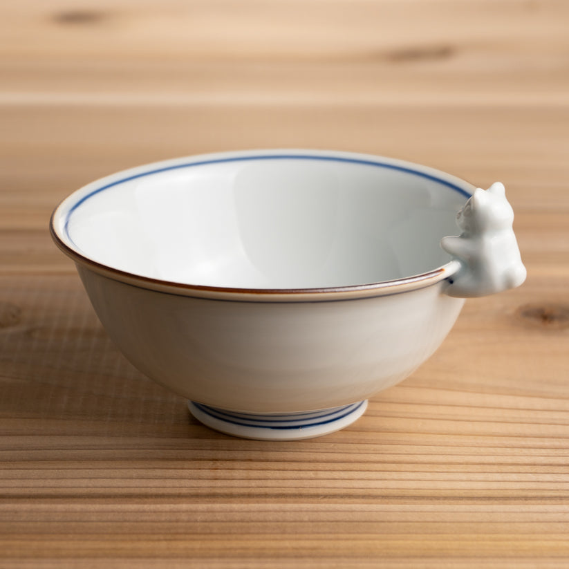 磁器のかわいいクマがひっついたご飯茶碗です。