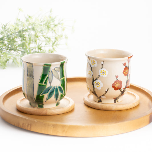 売り切れ【清水焼】湯吞 紅白梅 花光山窯