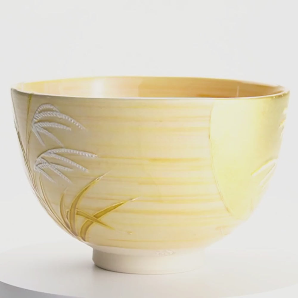 夕暮れに風に揺れるススキが描かれた抹茶碗です。