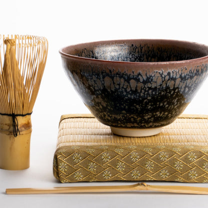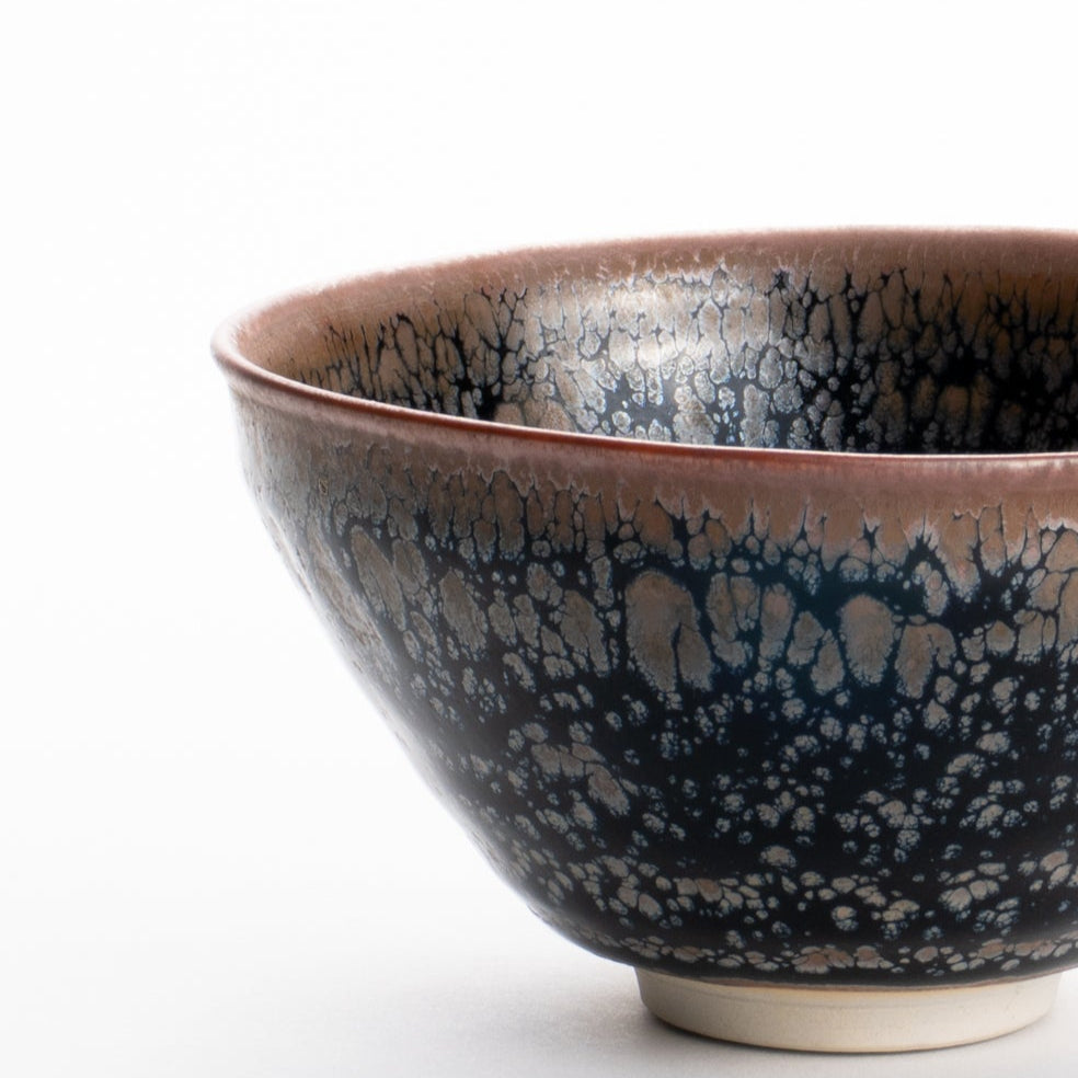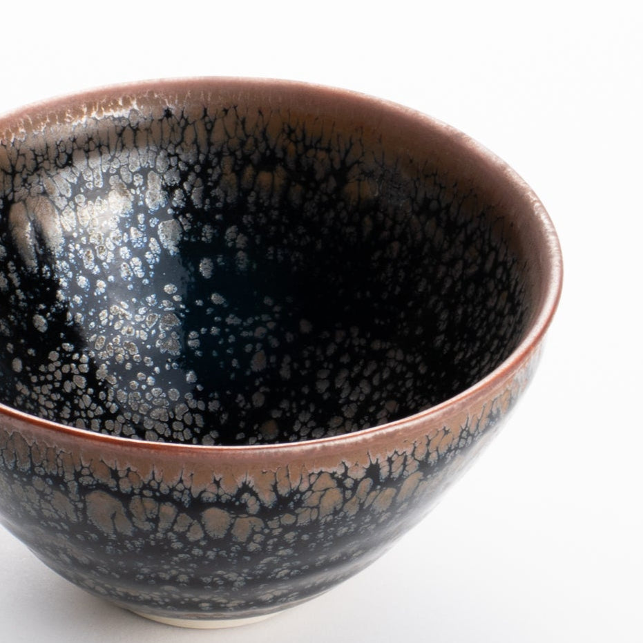 天目とは、鉱物を豊富に含む釉薬が焼成の過程で美しい模様へと変化する、古来中国より伝わる伝統的な焼き物の技法です。