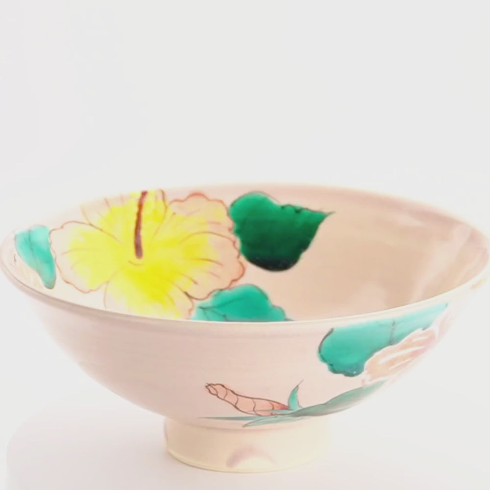 手描きの華やかな文様が魅力の、京焼・清水焼の抹茶碗です。
