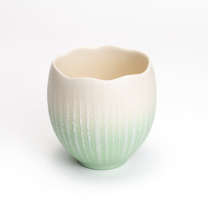 【清水焼】輪花湯呑 釉泥彩 若草色 竹村陽太郎