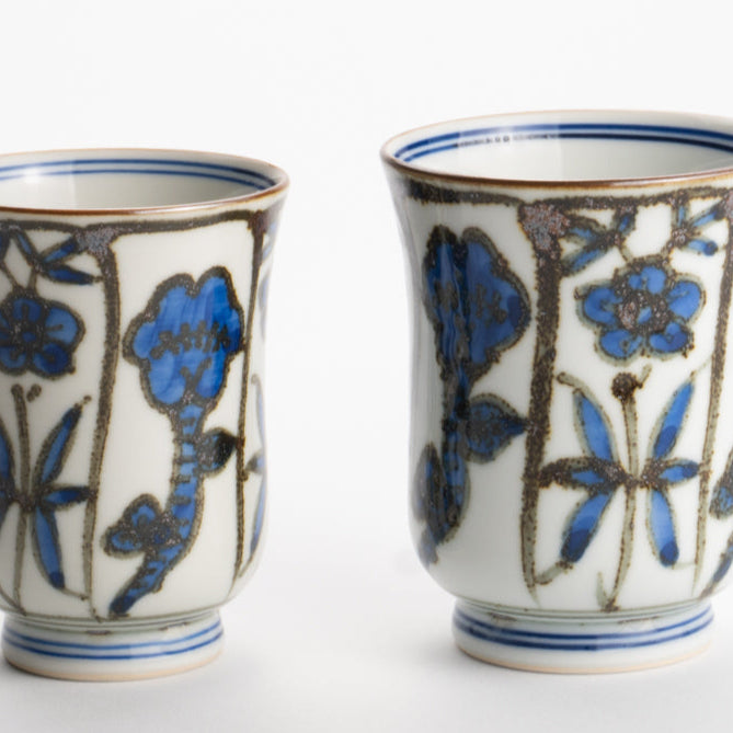 【清水焼】湯呑 花まつり 青 俊山窯