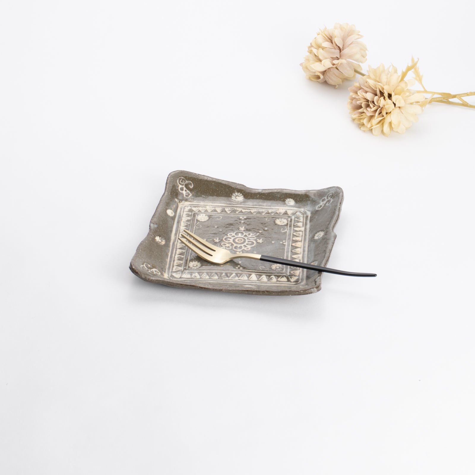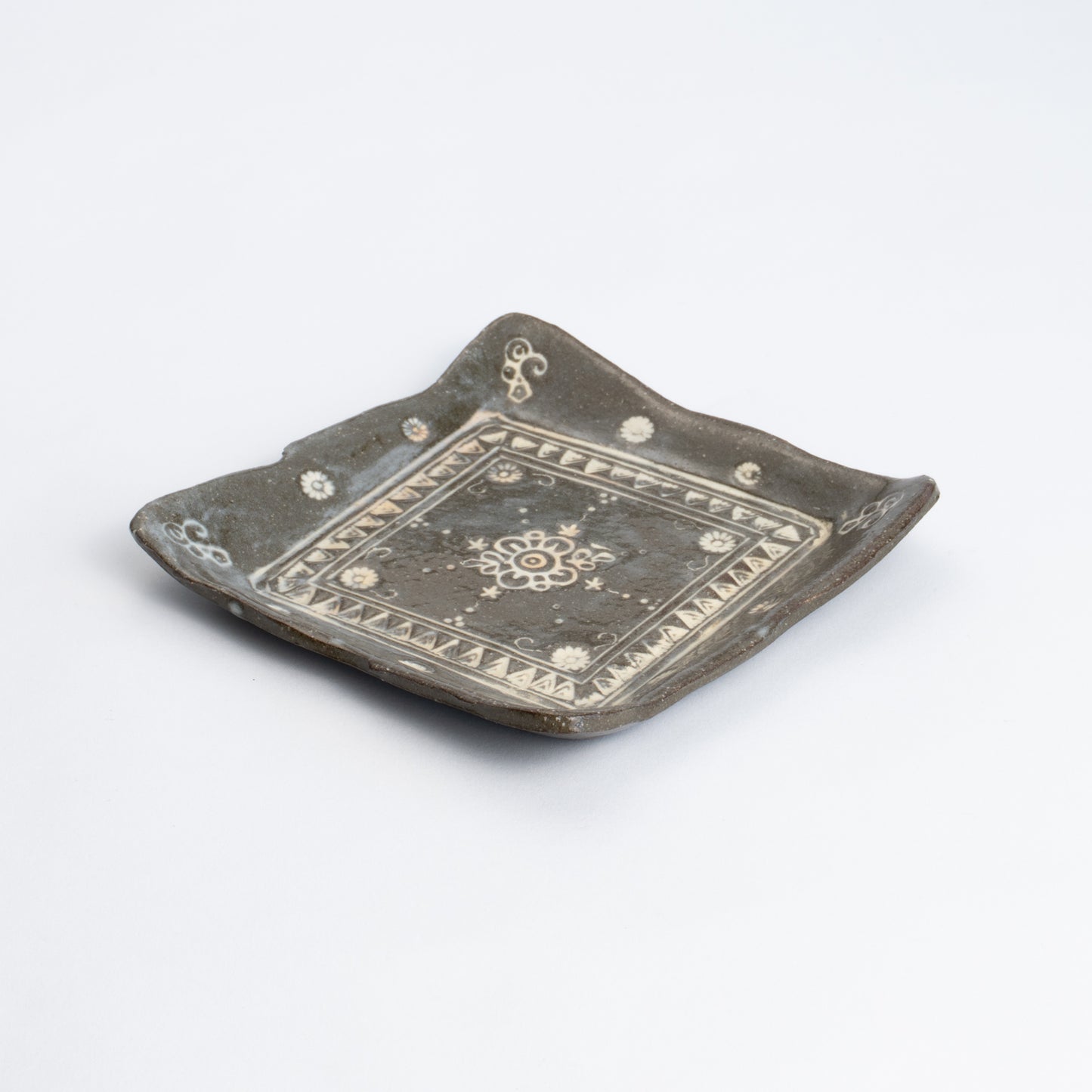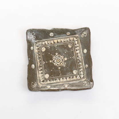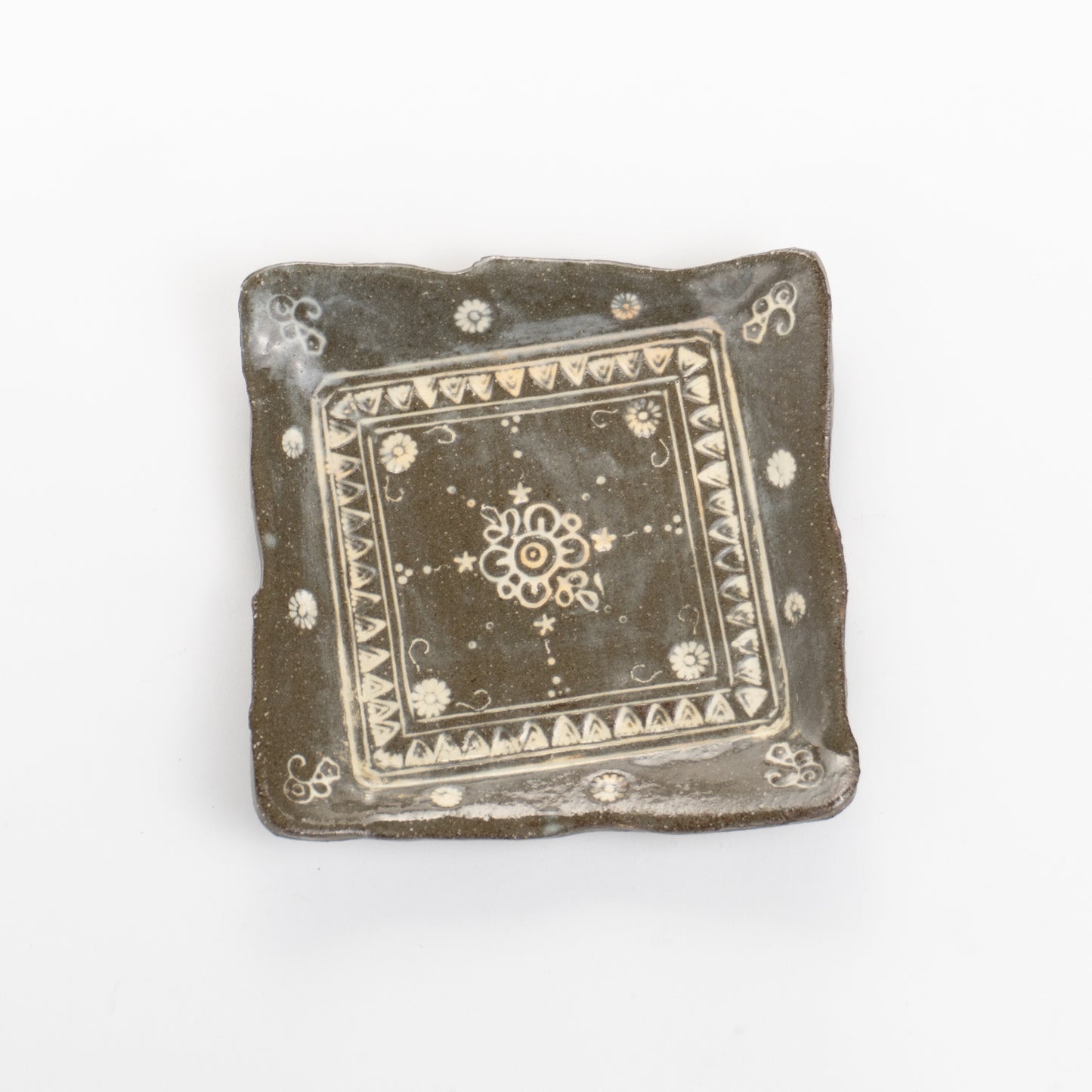 【清水焼】四方小皿 三島更紗紋 伯耆正一