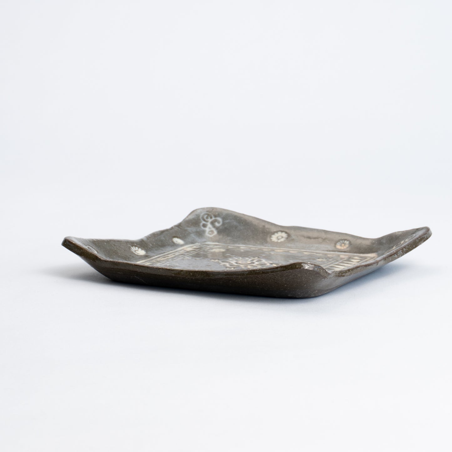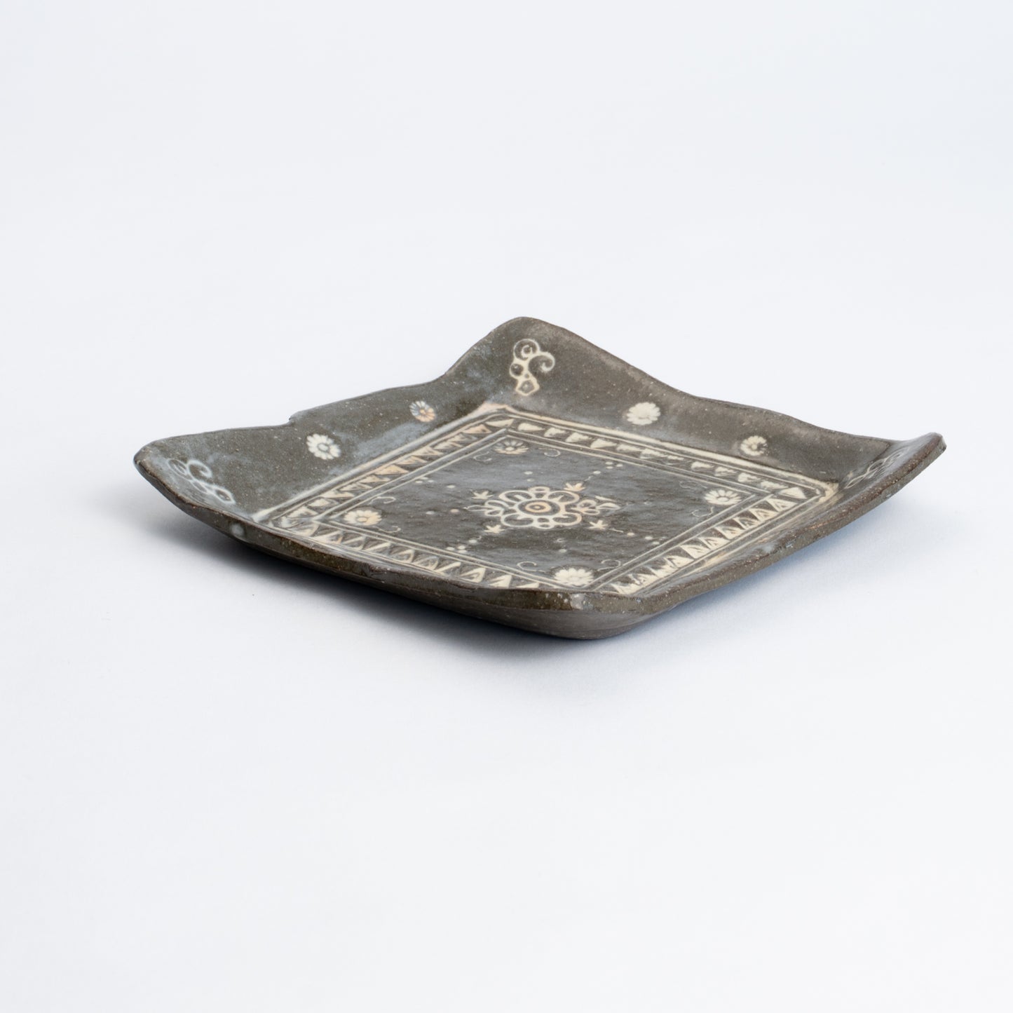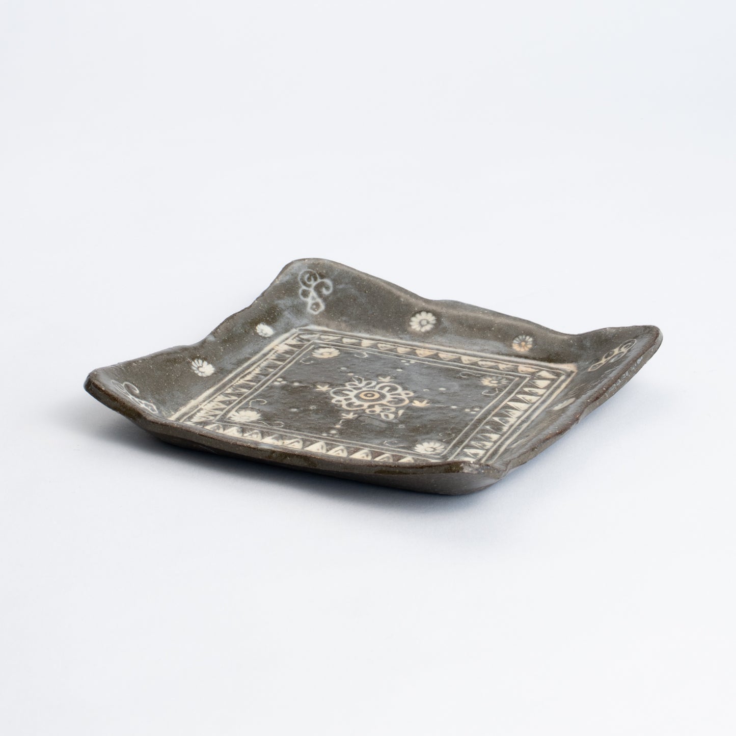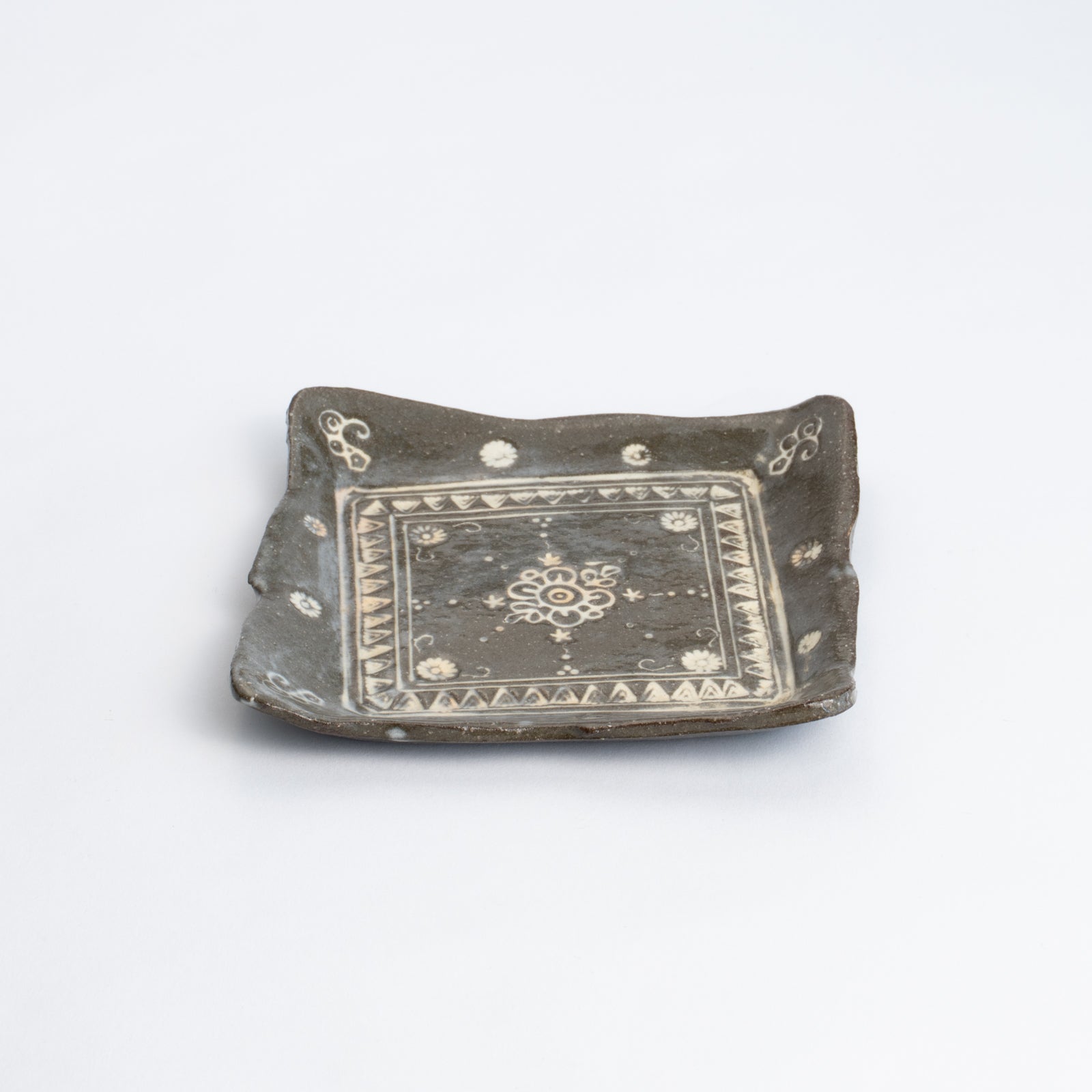 【清水焼】四方小皿 三島更紗紋 伯耆正一