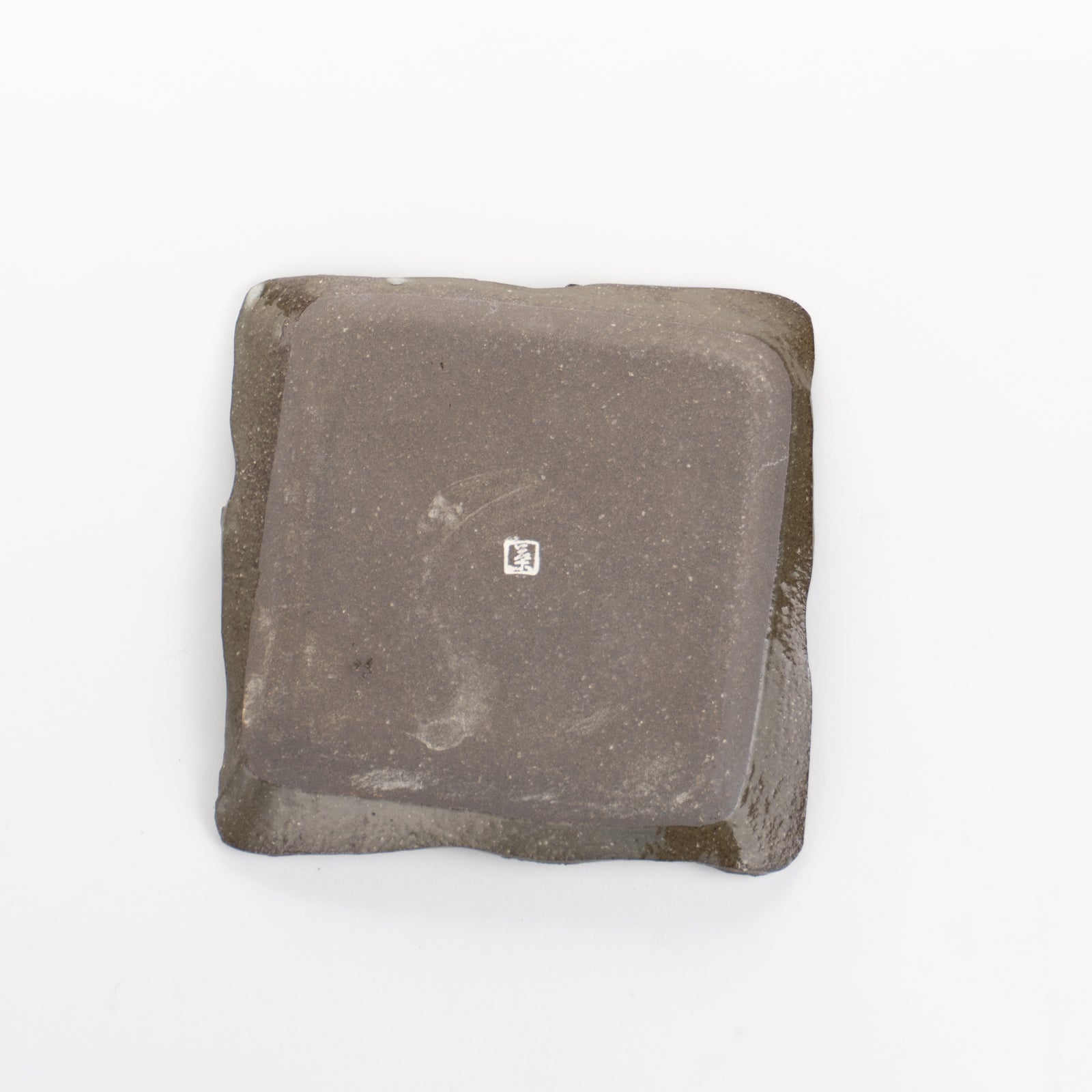 【清水焼】四方小皿 銹絵 和歌ススキ 俊山窯