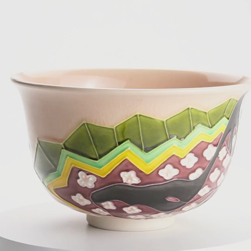 半世紀を超えるキャリアをもつベテラン陶芸家が手がける、まるでアートのような鮮やかな抹茶碗です。