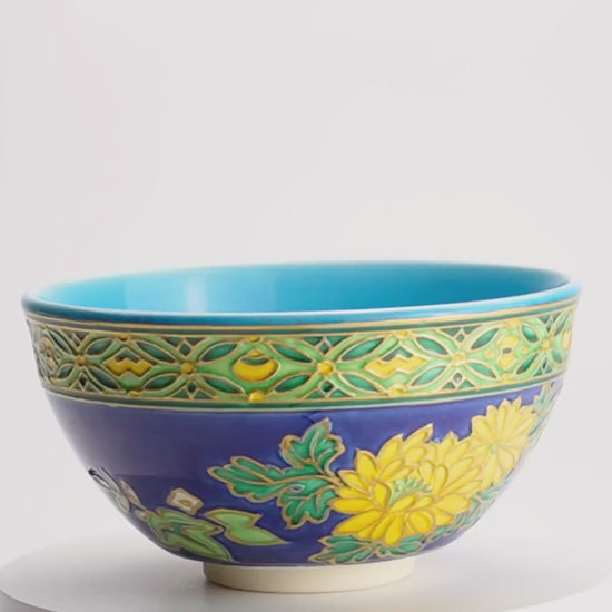 抹茶碗 紺青交趾"菊桐" 山本一如