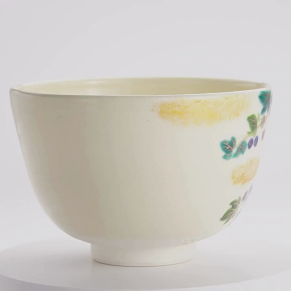 鮮やかな葡萄の絵が目を引く、華やかな一碗。
