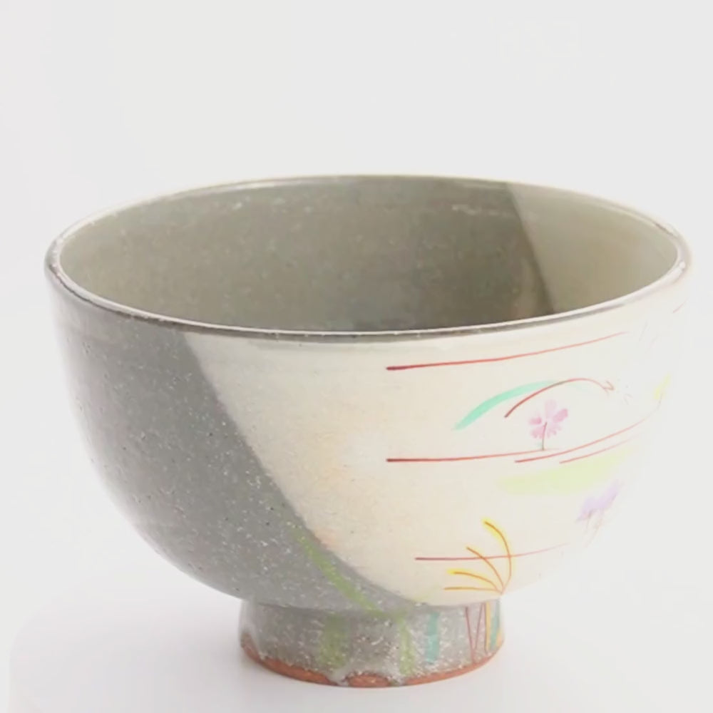 手描きの華やかな文様が魅力の、京焼・清水焼の抹茶碗です。
