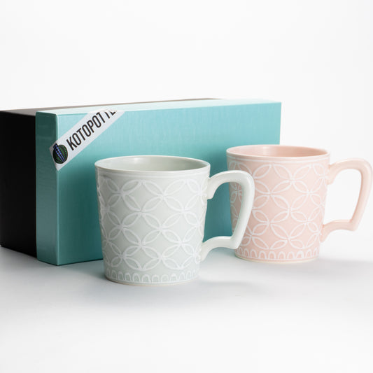 【清水焼】ペアマグカップ ピンク七宝/白磁七宝 貴古窯