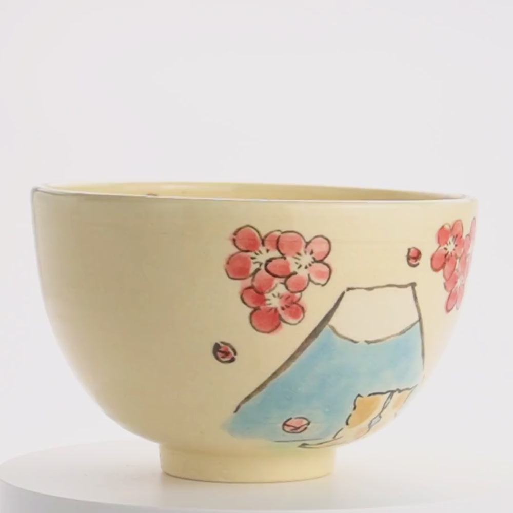 抹茶碗 仲良し猫「富士山と梅」 工房咲楽
