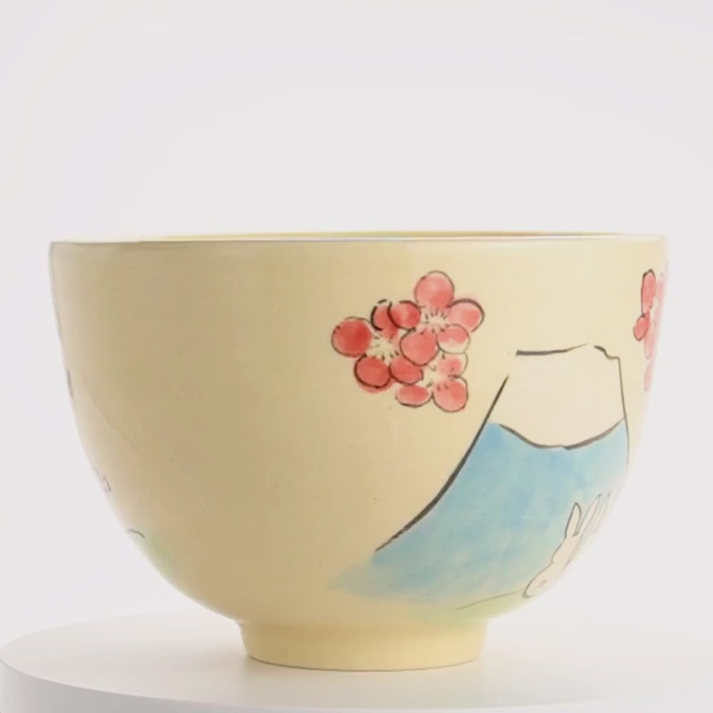 抹茶碗 仲良しうさぎ「富士山と梅」 工房咲楽