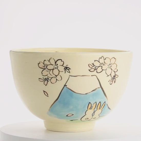抹茶碗 仲良しうさぎ「富士山と桜」 工房咲楽