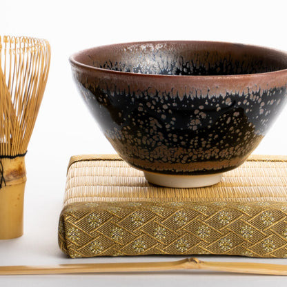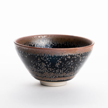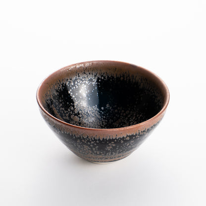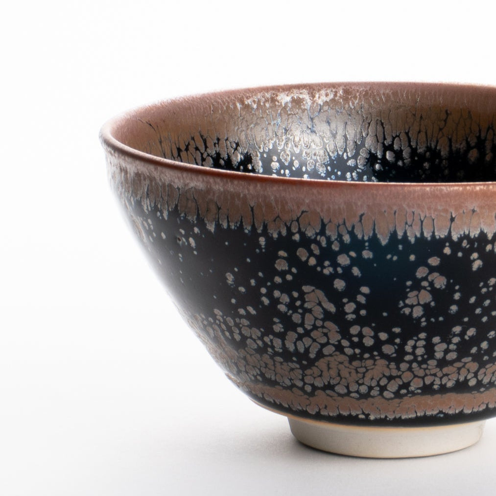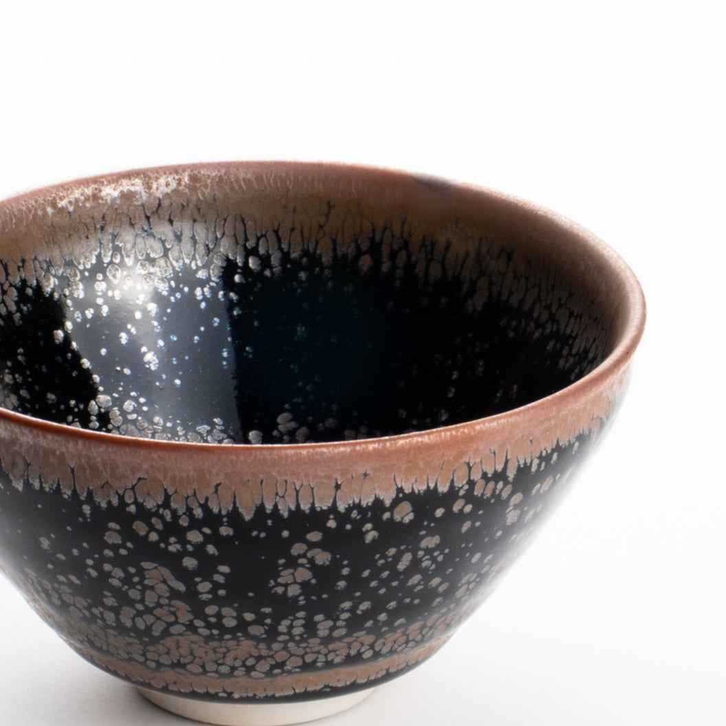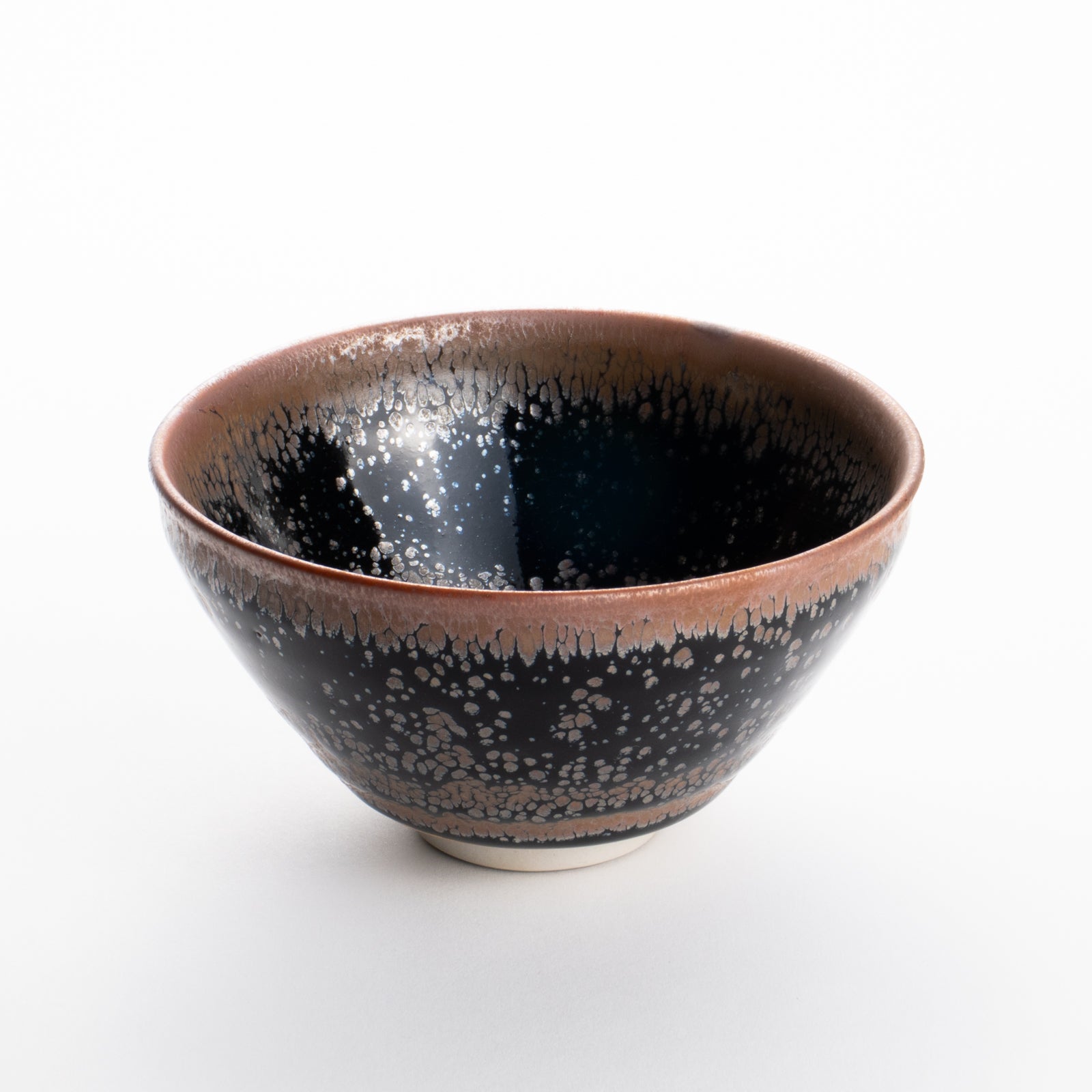 天目とは、鉱物を豊富に含む釉薬が焼成の過程で美しい模様へと変化する、古来中国より伝わる伝統的な焼き物の技法です。