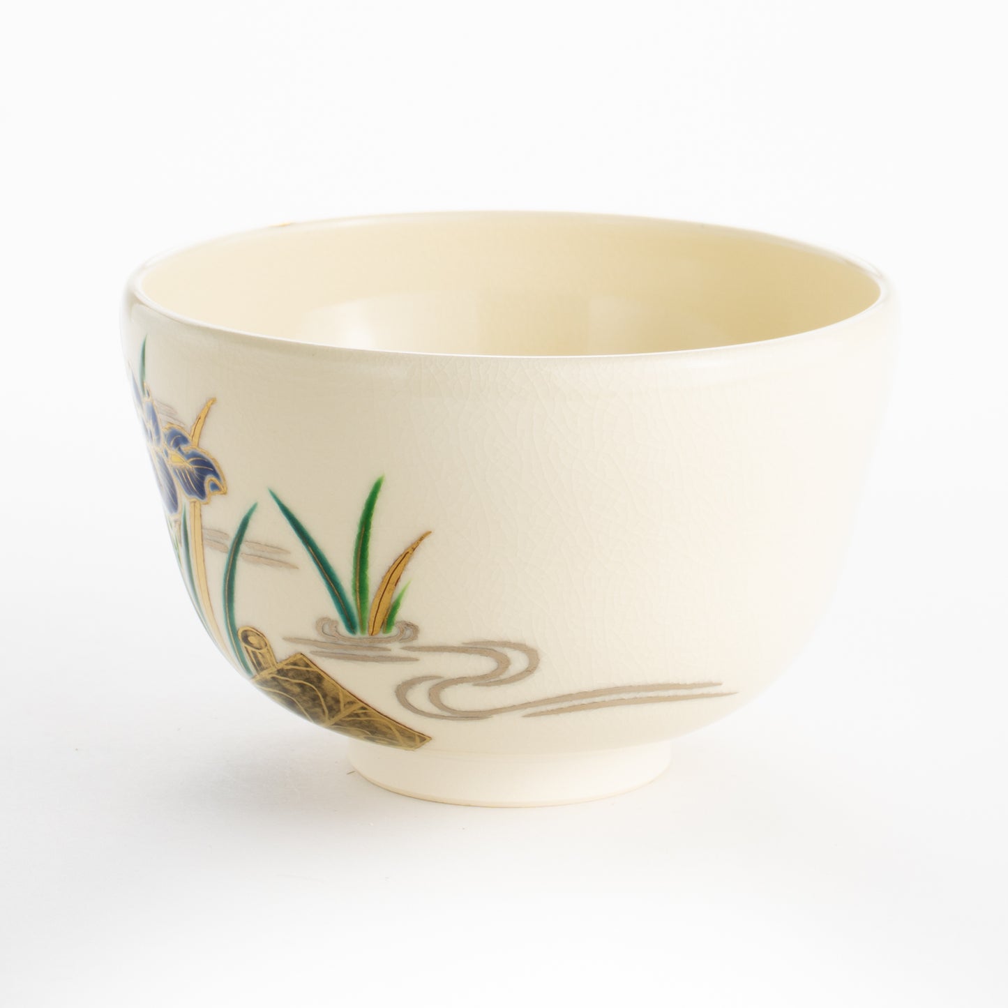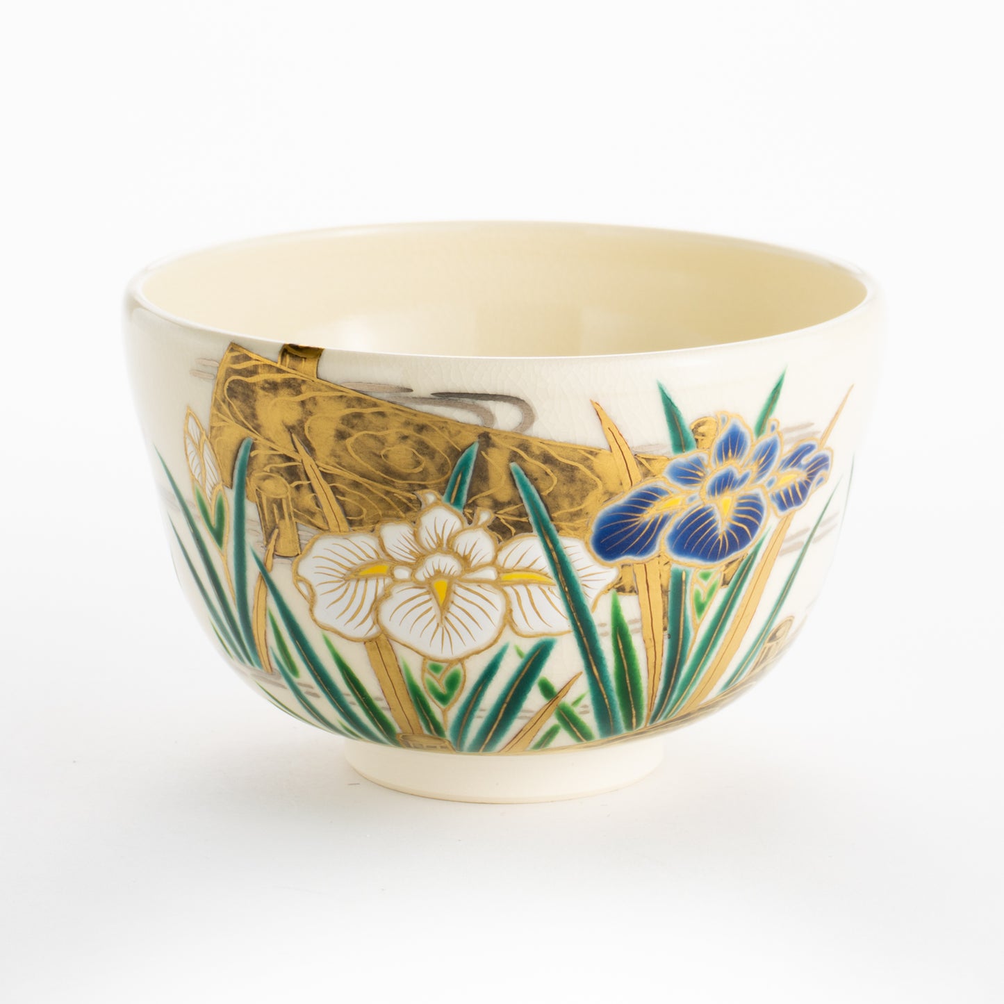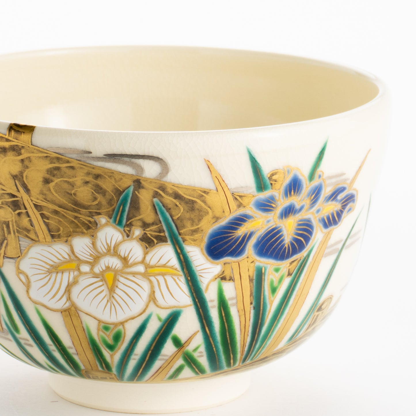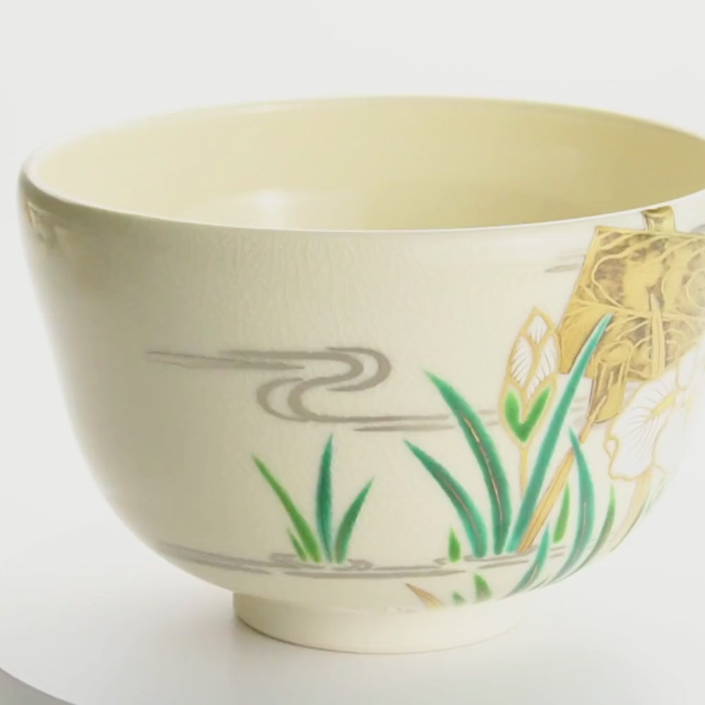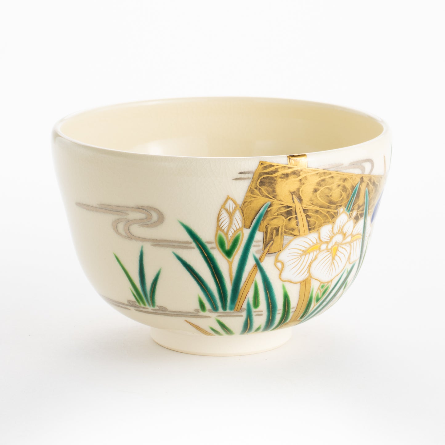 金彩で描かれた八つ橋に、美しく咲く菖蒲の絵付け。