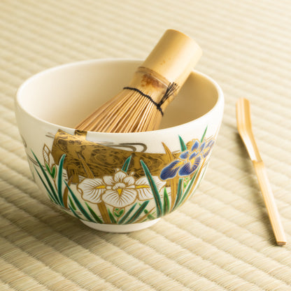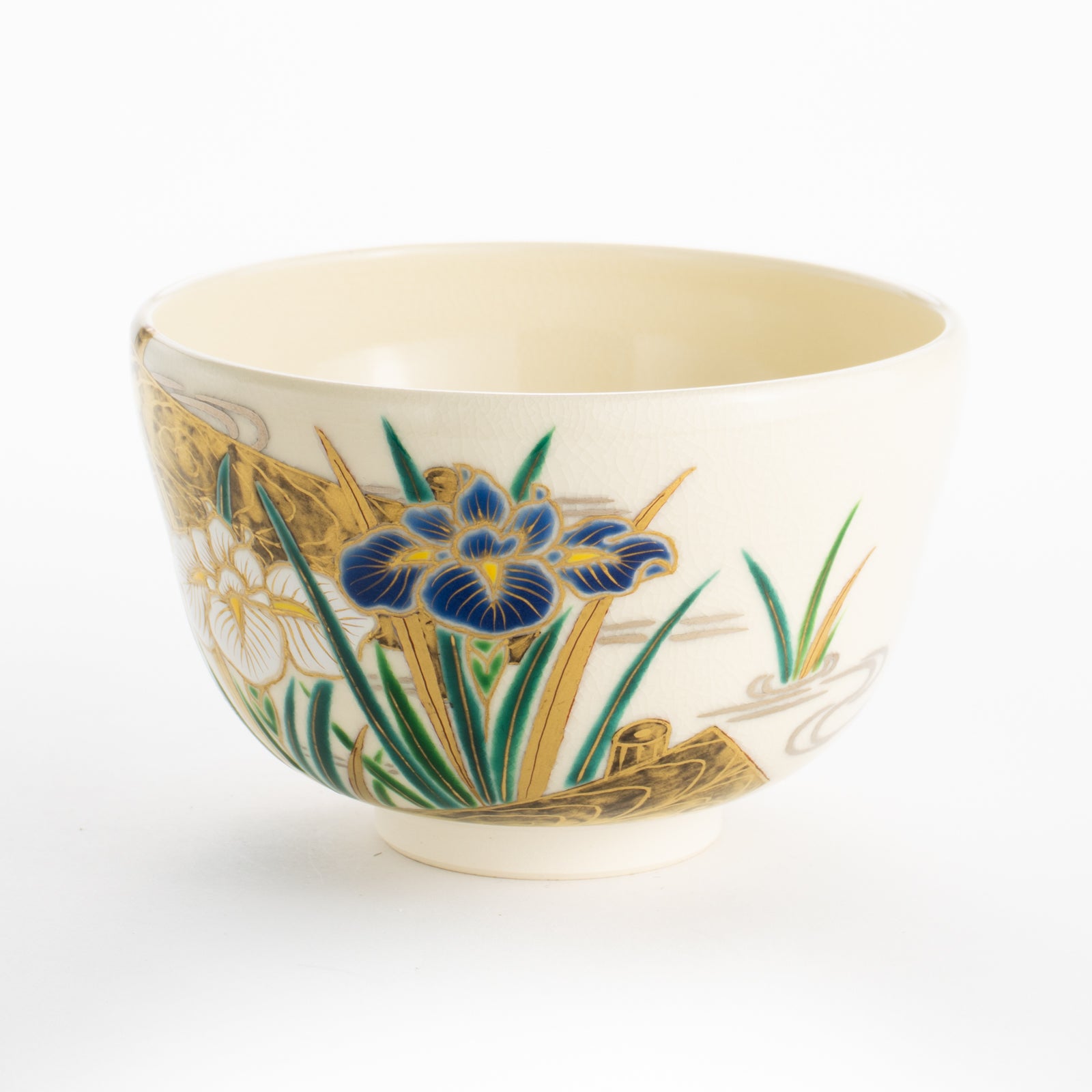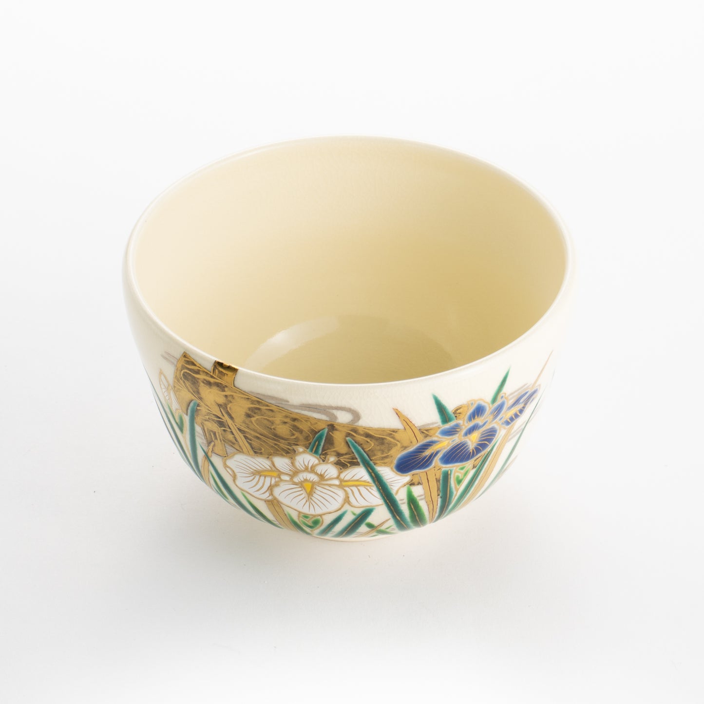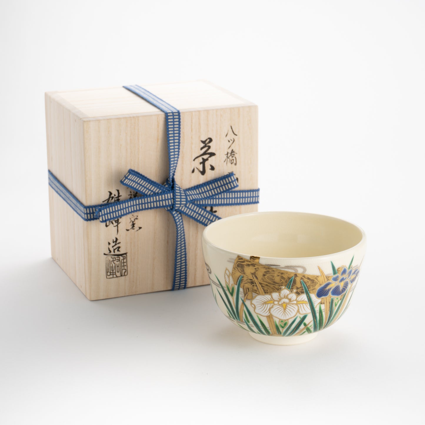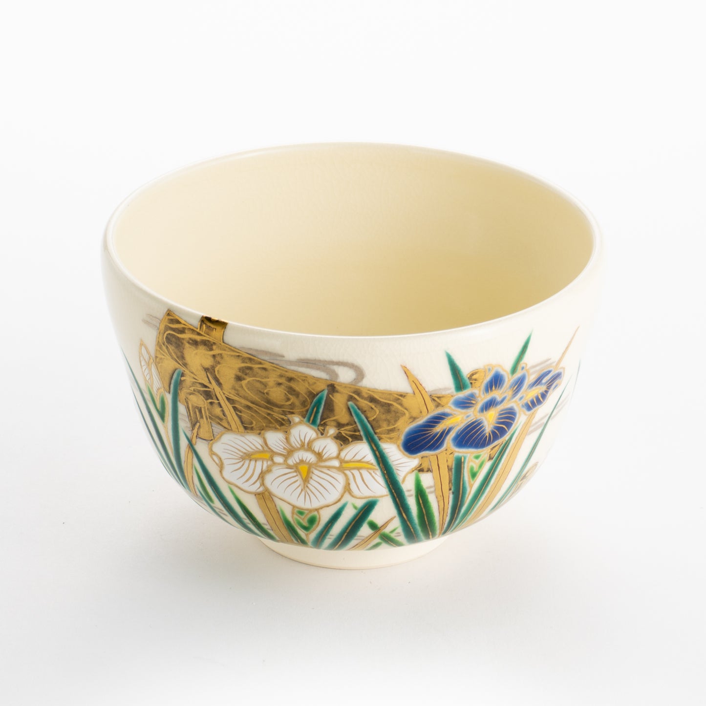 金彩で描かれた八つ橋に、美しく咲く菖蒲の絵付け。