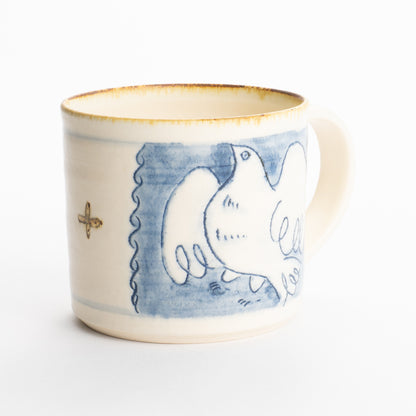 【清水焼】マグカップ 染付小紋"猫" 風龍窯