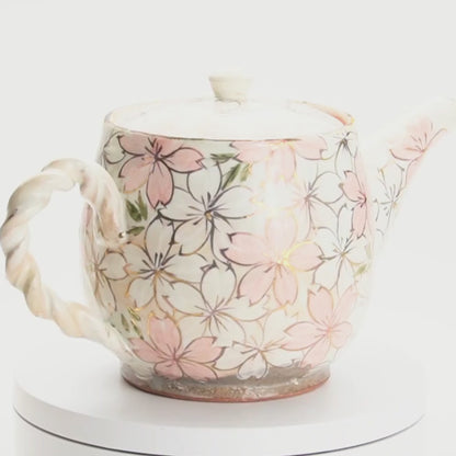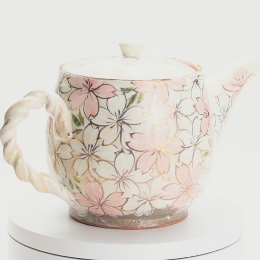 ポット全体に満開の桜が絵付けされた豪華なティーポットです。