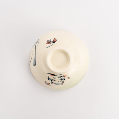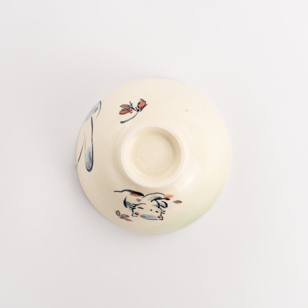 後ろ姿までかわいらしい絵柄のご飯茶碗。